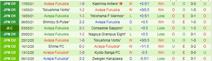 + Thống kê 10 trận gần nhất của Avispa Fukuoka