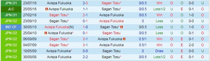 Phong độ và thống kê đối đầu Sagan Tosu - Avispa Fukuoka gần đây: