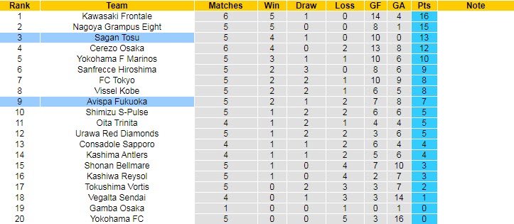 Chiều nay, Sagan Tosu có trận đấu tiếp đón tân binh Avispa Fukuoka trên sân nhà. Rõ ràng, với những gì đang thể hiện tại, đội chủ sân Ekimae Real Estate thừa tự tin sẽ giành thêm một chiến thắng, qua đó bám đuổi đội đầu bảng Kawasaki Frontale.
