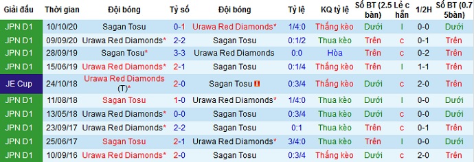 Tuy nhiên trong 5 lần đối đầu gần nhất Urawa Red Diamonds vẫn đang là đội chiếm ưu thế với 3 trận thắng và 2 trận hòa. Thế nên chọn cửa dưới ở trận đấu này có phần hợp lý hơn, nhất là khi Sagan Tosu đang chơi khá tệ trên sân nhà.