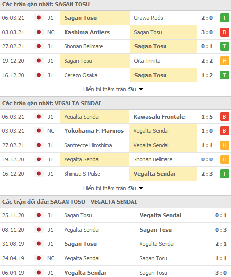 Phong độ và thống kê đối đầu gần đây Sagan Tosu vs Vegalta Sendai: