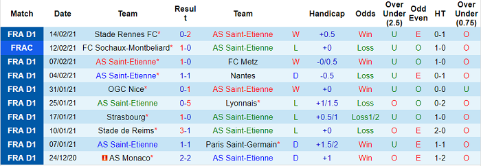 - Thống kê 10 trận gần nhất của Saint-Etienne