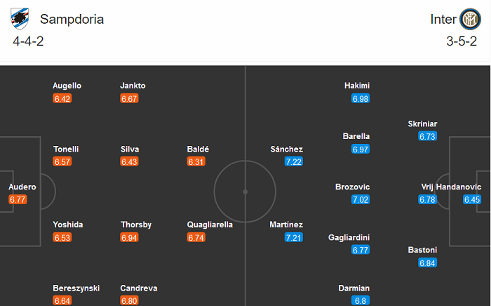 Đội hình dự kiến Sampdoria vs Inter Milan