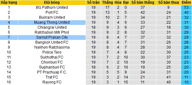 Trong khi đó Muang Thong đang đứng thứ 5 trên bảng xếp hạng với 31 điểm cũng sau 19 vòng đấu. Thế nhưng khoảng cách với đội nhì bảng Port FC đang là 9 điểm và khoảng cách đến đội đầu bảng Pathum United lên tới 22 điểm nên rất khó để Muang Thong có thể cạnh tranh 1 suất dự cúp châu lục.