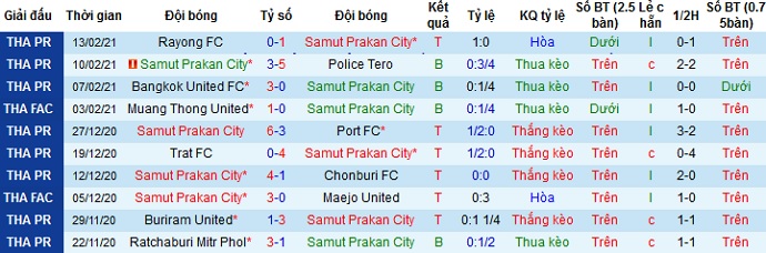 + Thống kê 10 trận gần nhất của Samut Prakan