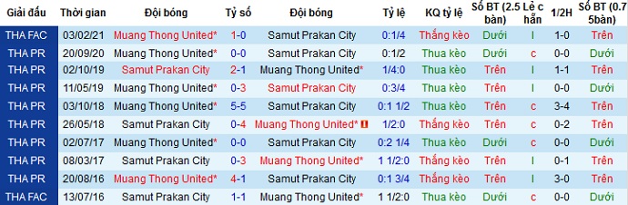 + Lịch sử đối đầu Samut Prakan vs Muang Thong