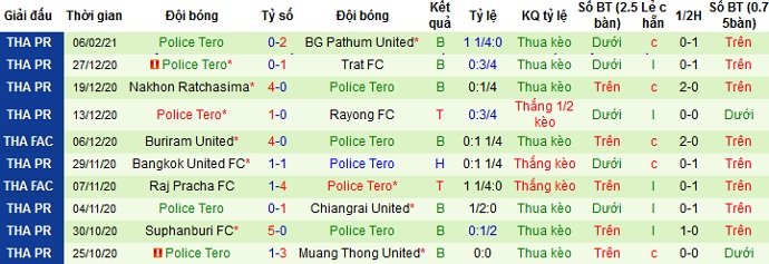 + Lịch sử đối đầu Samut Prakan vs Police Tero