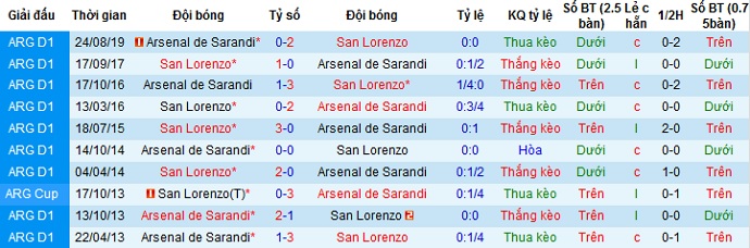 + Lịch sử đối đầu San Lorenzo vs Arsenal Sarandi