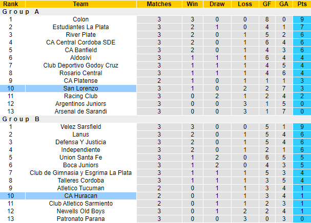 Phía bên đối diện, Huracan cũng khởi đầu không tốt ở mùa giải năm nay. Họ có 2 trận hòa sau 3 lượt đấu và cũng xếp thứ 10 ở nhóm B. Nhìn chung là với màn trình diễn của đôi bên, mục tiêu lọt vào top 4 là không hề đơn giản.