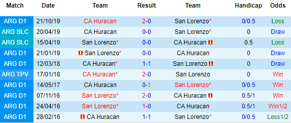 + Lịch sử đối đầu San Lorenzo vs Huracan