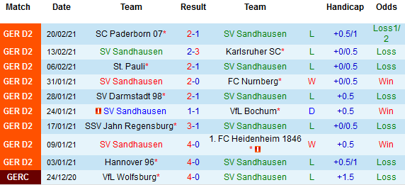 + Thống kê 10 trận gần nhất của Sandhausen