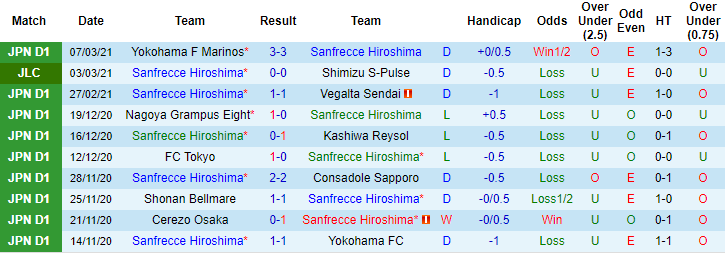 + Thống kê 10 trận gần nhất của Sanfrecce Hiroshima