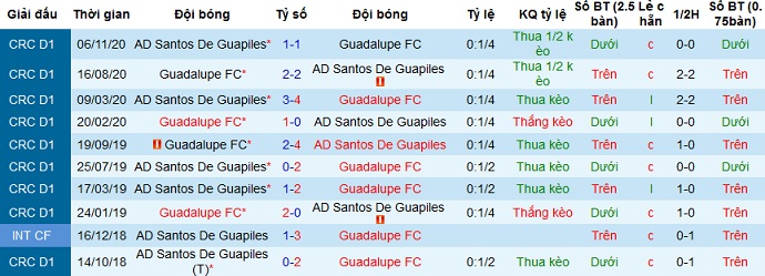 + Soi tỷ lệ kèo châu Á: Với phong độ có phần tốt hơn đối thủ và được thi đấu trên sân nhà nên Santos Guápiles đang được đánh giá là đội cửa trên với kèo chấp là -0,5. Thế nhưng ở 4 lần gặp nhau gần nhất Guadalupe vẫn đang bất bại trước đối thủ với 2 trận thắng và 2 trận hòa. Thế nên chọn cửa dưới ở trân đấu này có cơ sở và hợp lý hơn