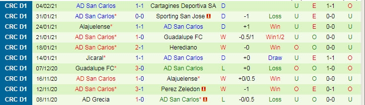 Bên kia sân, San Carlos là cái tên cứng đầu khi duy trì được phong độ bất bại. Cụ thể, họ thắng 2 và hòa 4 sau 6 lượt trận đầu tiên của lượt về. Nhìn rộng hơn, San Carlos bất bại tới 15 trong số 17 trận gần đây thuộc khuôn khổ giải VĐQG Costa Rica.