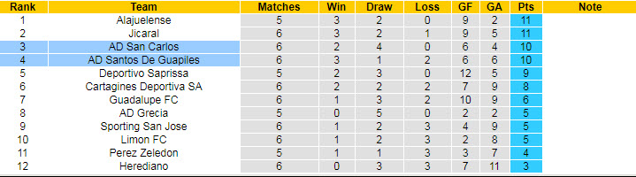 Nhìn qua, Santos Guapiles và San Carlos là cặp đấu cân bằng khi cả hai cùng có được 10 điểm sau 6 lượt trận, qua đó đứng ở các vị trí thứ 4 và 3 trên BXH giải VĐQG Costa Rica (lượt về).