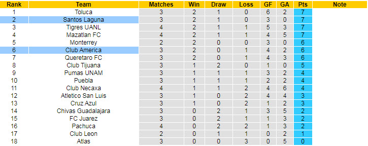 Sáng mai, Santos Laguna có trận đấu tương đối khó lường trước Club America. Xét về phong độ, Club America không quá lép vế trước đối thủ khi họ thắng 2 và chỉ để thua 1 sau 3 vòng đấu đầu tiên.