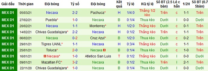 + Thống kê 10 trận gần nhất của Club Necaxa