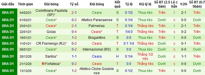 Thành tích gần đây của Ceará cũng không quá tệ với 2 trận thắng và 3 trận thua ở 5 trận gần nhất. Đáng nói là trên sân khách đội bóng lại thi đấu rất tốt. Sau chuỗi 6 trận bất bại kể từ đầu tháng 12 năm ngoái trong đó có tới 5 chiến thắng, mới đây Ceará mới để thua trước Corinthians ở lần du đấu gần nhất.