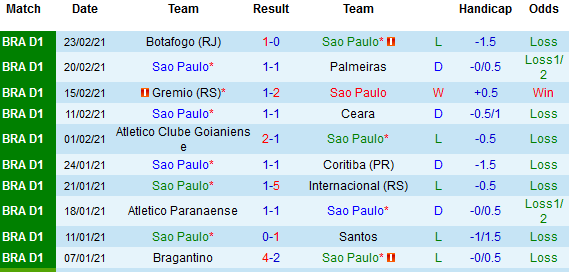 + Thống kê 10 trận gần nhất của Sao Paulo