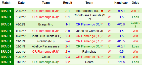 + Thống kê 10 trận gần nhất của Flamengo