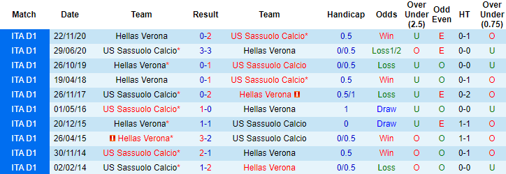 Sassuolo đã đánh bại Verona với tỷ số 2-0 ở trận đối đầu giai đoạn lượt đi Serie A 2020/21. Tuy nhiên điều đáng bàn là ở trận đấu đó, Sassuolo đã chấp -1/2 theo kèo châu Á trước giờ bóng lăn. Lần tái đấu sắp tới được thi đấu trên sân nhà nhưng Sassuolo chỉ chấp -1/4 theo chỉ số tương tự.