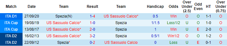 Phong độ và thống kê đối đầu Sassuolo vs Spezia