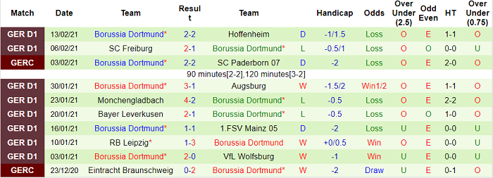 - Dortmund: Hitz; Morey, Akanji, Hummels, Guerreiro; Emre Can, Delaney; Sancho, Reus, Reyna; Haaland.