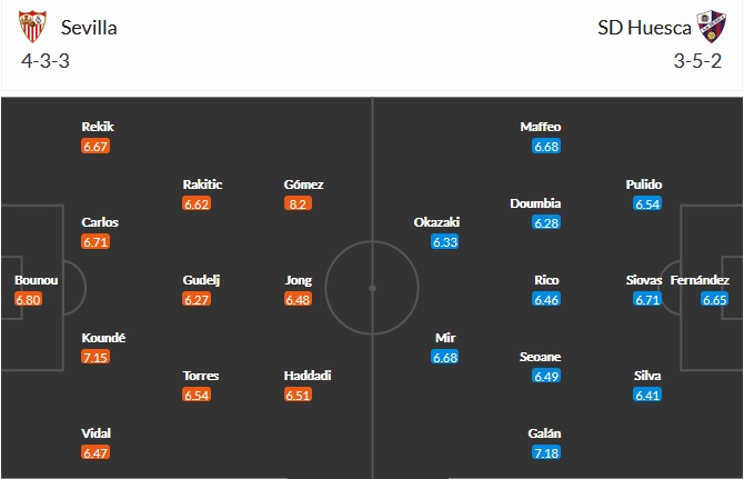 Đội hình dự kiến Sevilla vs Huesca