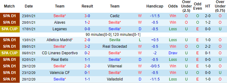+ Thống kê 10 trận gần nhất của Sevilla