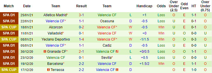 + Thống kê 10 trận gần nhất của Valencia