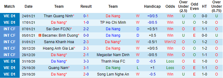 + Thống kê 10 trận gần nhất của SHB Đà Nẵng
