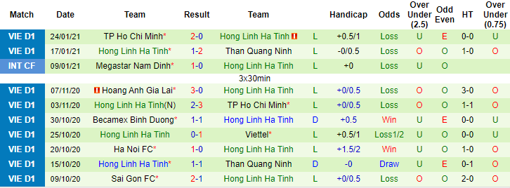 Trận đấu với Than Quảng Ninh họ bỏ lỡ 2 quả 11m. Đến trận đấu với TP.HCM, đội bóng Hà Tĩnh lại phải thi đấu thiếu người ngay từ hiệp một. Chuyến làm khách sắp tới đến sân Hoà Xuân, Hồng Lĩnh Hà Tĩnh chắc chắn sẽ quyết tâm gấp bội để hướng tới điểm số đầu tiên ở mùa giải 2021.