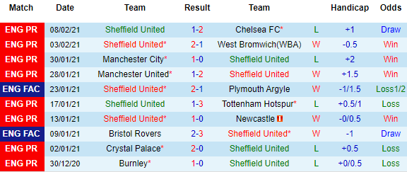 + Thống kê 10 trận gần nhất của Sheffield United