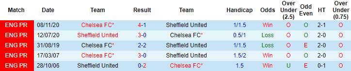 Phong độ và thống kê đối đầu Sheffield United vs Chelsea