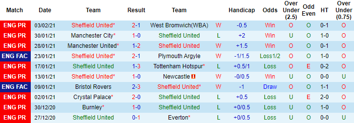 + Thống kê 10 trận gần nhất của Sheffield United