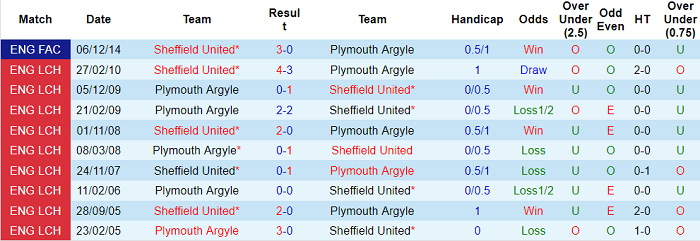 Phong độ và thống kê đối đầu Sheffield United - Plymouth