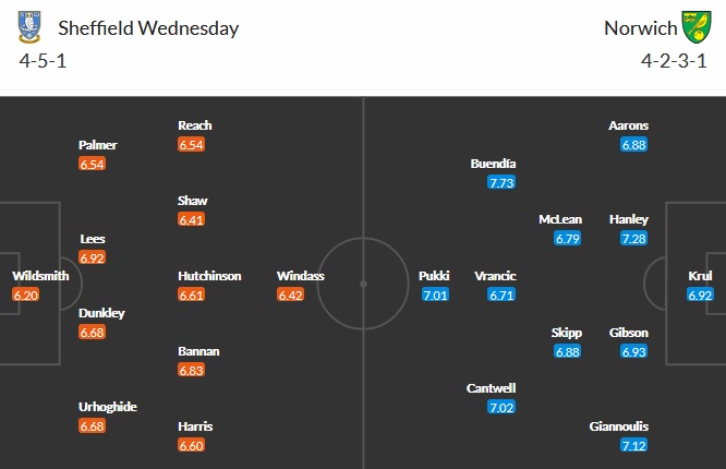 Đội hình dự kiến Sheffield Wed vs Norwich City