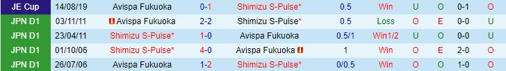 Phong độ và thống kê đối đầu Shimizu S-Pulse vs Avispa Fukuoka gần đây:
