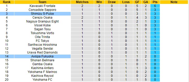Dự đoán tỷ số Shimizu S-Pulse 2-1 Avispa Fukuoka