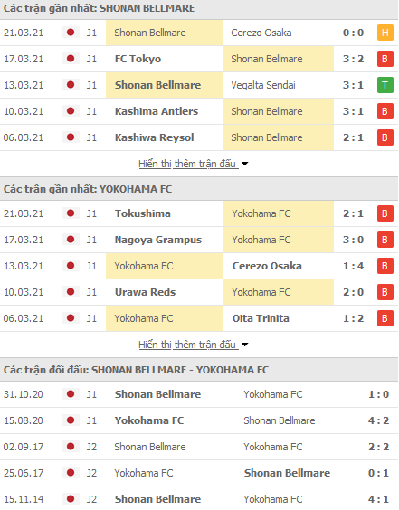 Phong độ và thống kê đối đầu gần đây Shonan Bellmare vs Yokohama FC: