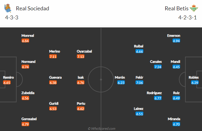 Sociedad thực sự không còn là chính mình so với thời điểm đầu mùa giải ở giai đoạn gần đây. 9 vòng đấu vừa qua tại La Liga, Sociedad để mất điểm 8 lần với 4 thất bại và 4 trận hòa. Trên sân nhà, Sociedad không thắng liên tiếp 5 trận gần đây trên mọi đấu trường. Trong khi đó Betis đang cực kỳ vào phom với 4 chiến thắng và 1 trận hòa ở 5 trận gần đây (thắng cả 5 trận theo kèo châu Á).