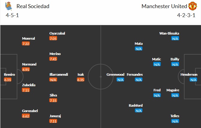 Đội hình dự kiến Sociedad vs Manchester United
