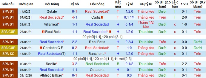 + Thống kê 10 trận gần nhất của Sociedad