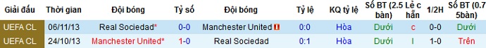 Trong lịch sử hai đội đã từng chạm trán nhau cách đây 7 năm tại cúp C1 châu Âu nhưng Manchester United chỉ vượt qua đối thủ với tổng tỷ số 1-0 sau 2 lượt trận. Rõ ràng Sociedad không phải đội bóng dễ bị đánh bại ngay trên sân nhà của họ, và với phong độ không thật cao của Manchester United thì chọn cửa dưới ở trận đấu này vẫn là phương án an toàn.