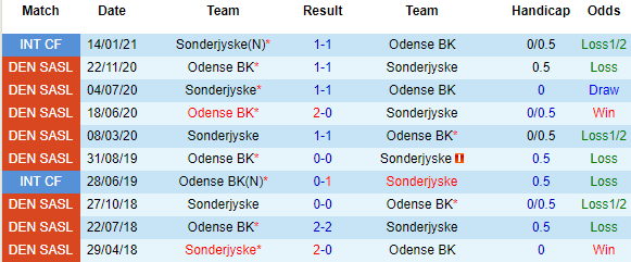 + Lịch sử đối đầu Sonderjyske vs Odense