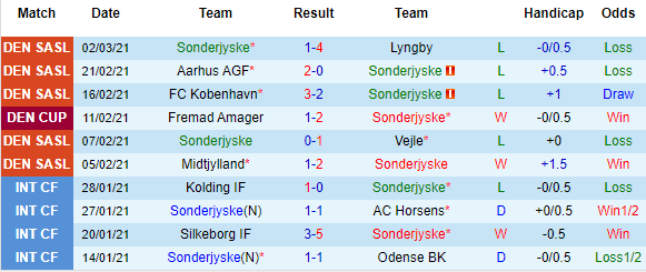 + Thống kê 10 trận gần nhất của Sonderjyske