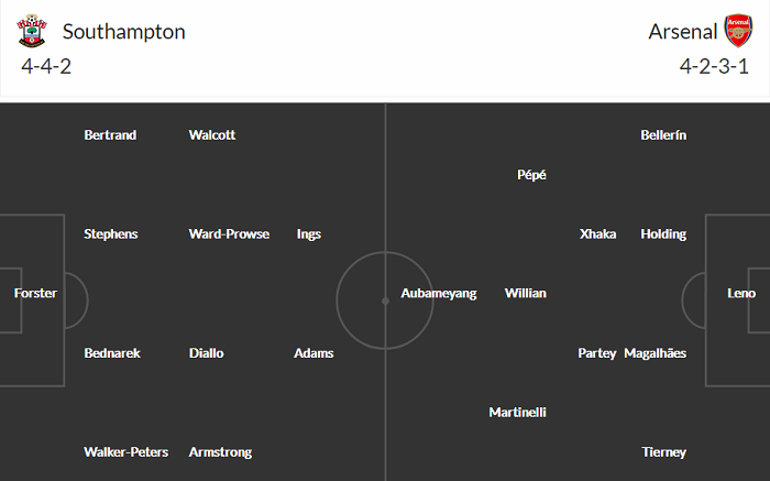 Đội hình dự kiến Southampton vs Arsenal