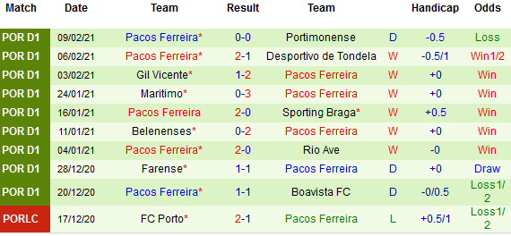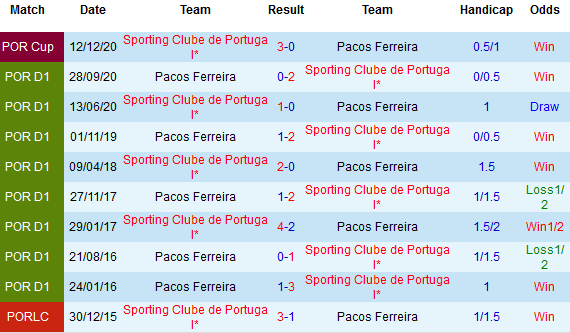 Sporting Lisbon cũng là đội duy nhất còn lại trong các giải hàng đầu châu Âu hiện nay giữ được thành tích bất bại khi có tới 15 chiến thắng, 3 trận hòa sau 18 trận. Đáng nói, Pacos Ferreira đã trở thành con mồi ưa thích dành cho đội chủ nhà khi họ toàn thua cả 10 lần gặp nhau gần nhất.