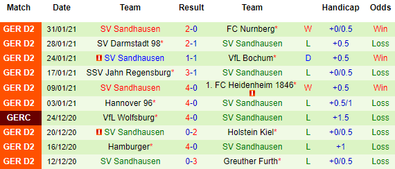 + Thống kê 10 trận gần nhất của Sandhausen