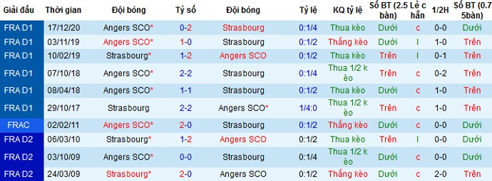 Điều đáng nói là cả 3 lần đối đầu gần nhất khi Strasbourg được thi đấu trên sân nhà họ đều không thể giành chiến thắng trước Angers. Thế nên chọn cửa dưới ở trận đấu này vẫn có cơ sở và có phần hợp lý.